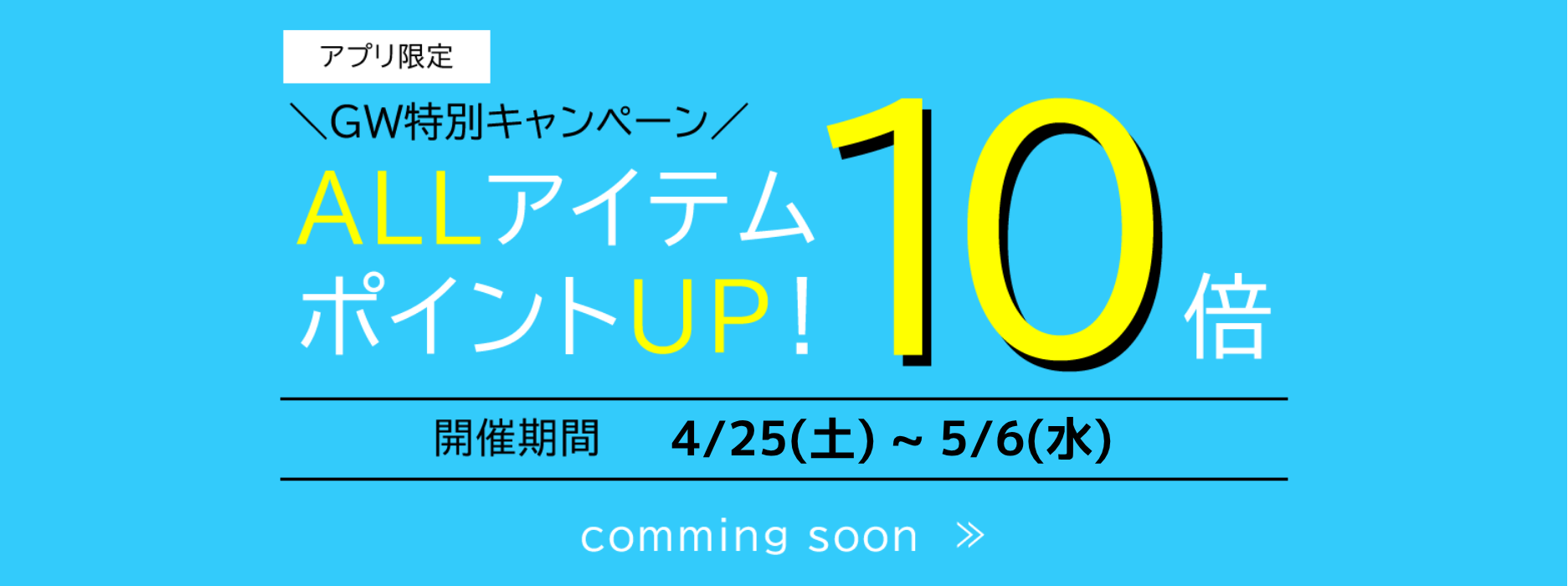 - ※予告※【アプリ限定】GW期間中はポイント10倍キャンペーン実施!