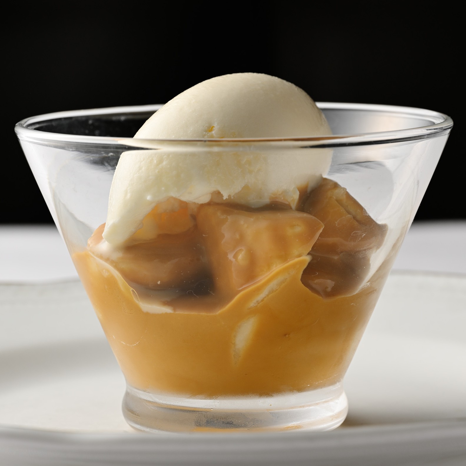 キャラメルのほろ苦さとアイスクリームの冷たさ、バナナの甘さが絶妙に溶け合い、どんなにお腹がいっぱいでもペロリと平らげること間違いなしです。