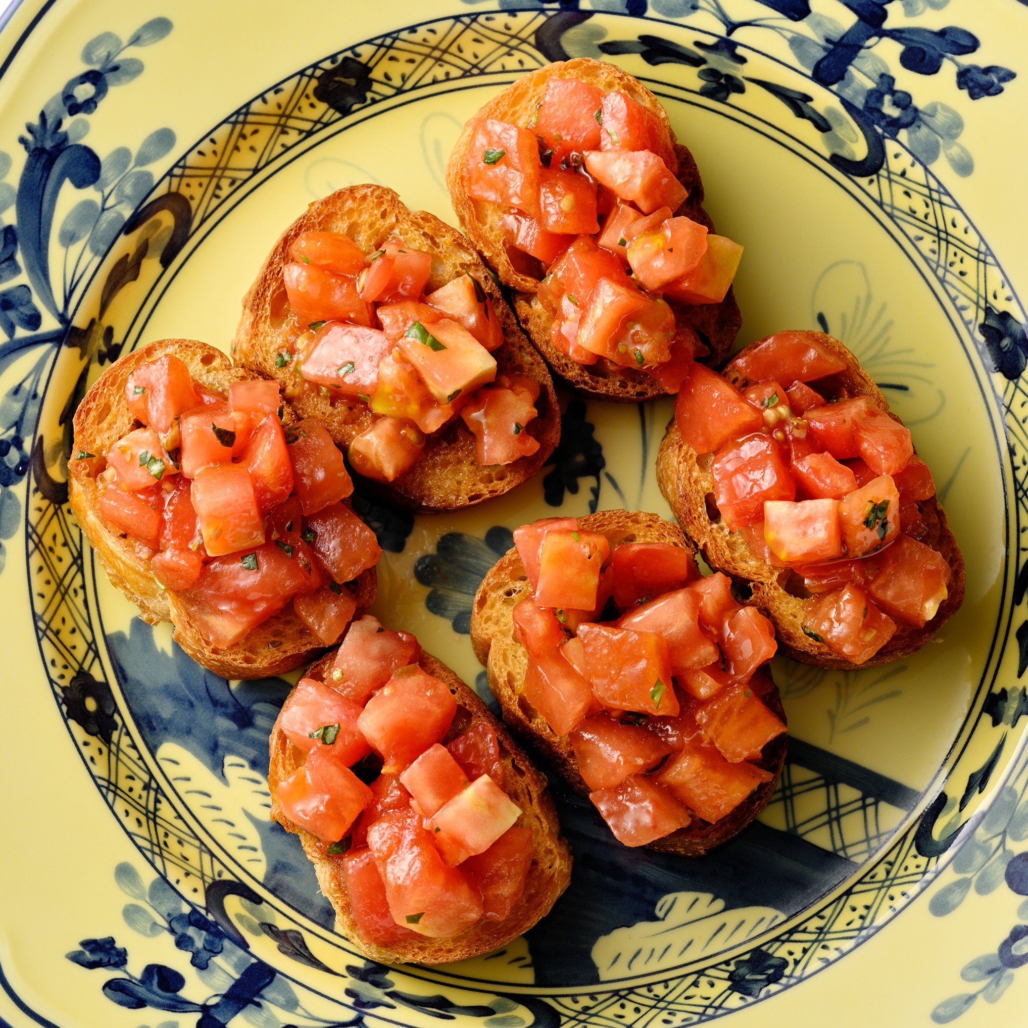 トーストしたパンに具材をのせて食べるブルスケッタは、軽食や前菜としてイタリアのテーブルによく登場する料理です。