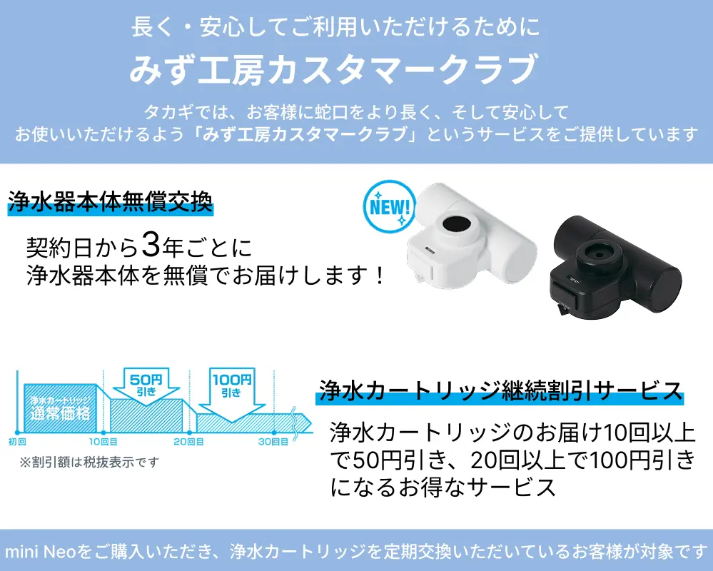 毎日おいしい水をご利用いただくには、定期的な浄水カートリッジの交換が必要です。