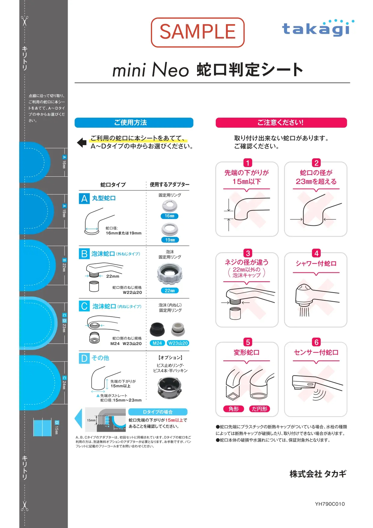 mini Neo蛇口判定シートをダウンロードして、ご自宅の蛇口のサイズを確認いただけます。